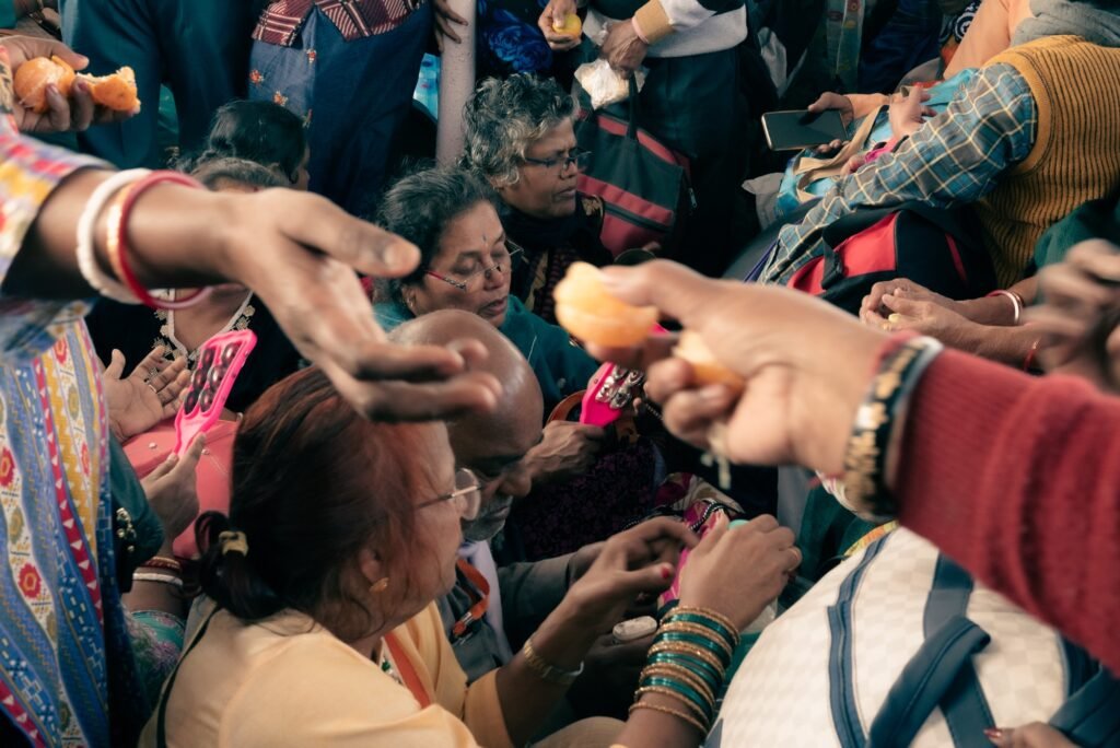 কোনো এক স্টেশনে বেশ অনেক্ষণ ট্রেন দাড়িয়ে l বিভিন্ন ধরনের খাবার, জিনিসপত্র নিয়ে হকাররা উঠছে, কেনাকাটা চলছে l আমরা ছাড়া আর কেউই বোধহয় সাগরমেলা যাচ্ছে না , নাকি আমদের মতোই মিশে আছে ভিড়ে, বোঝার উপায় নেই l
